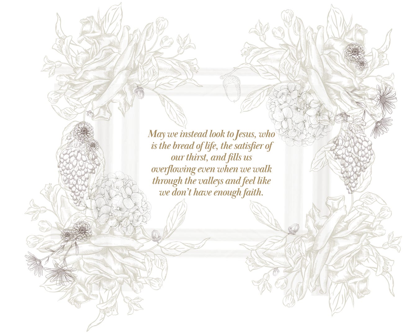 May we instead look to Jesus, who is the bread of life, the satisfier of our thirst, and fills us overflowing even when we walk through the valleys and feel like we don’t have enough faith.