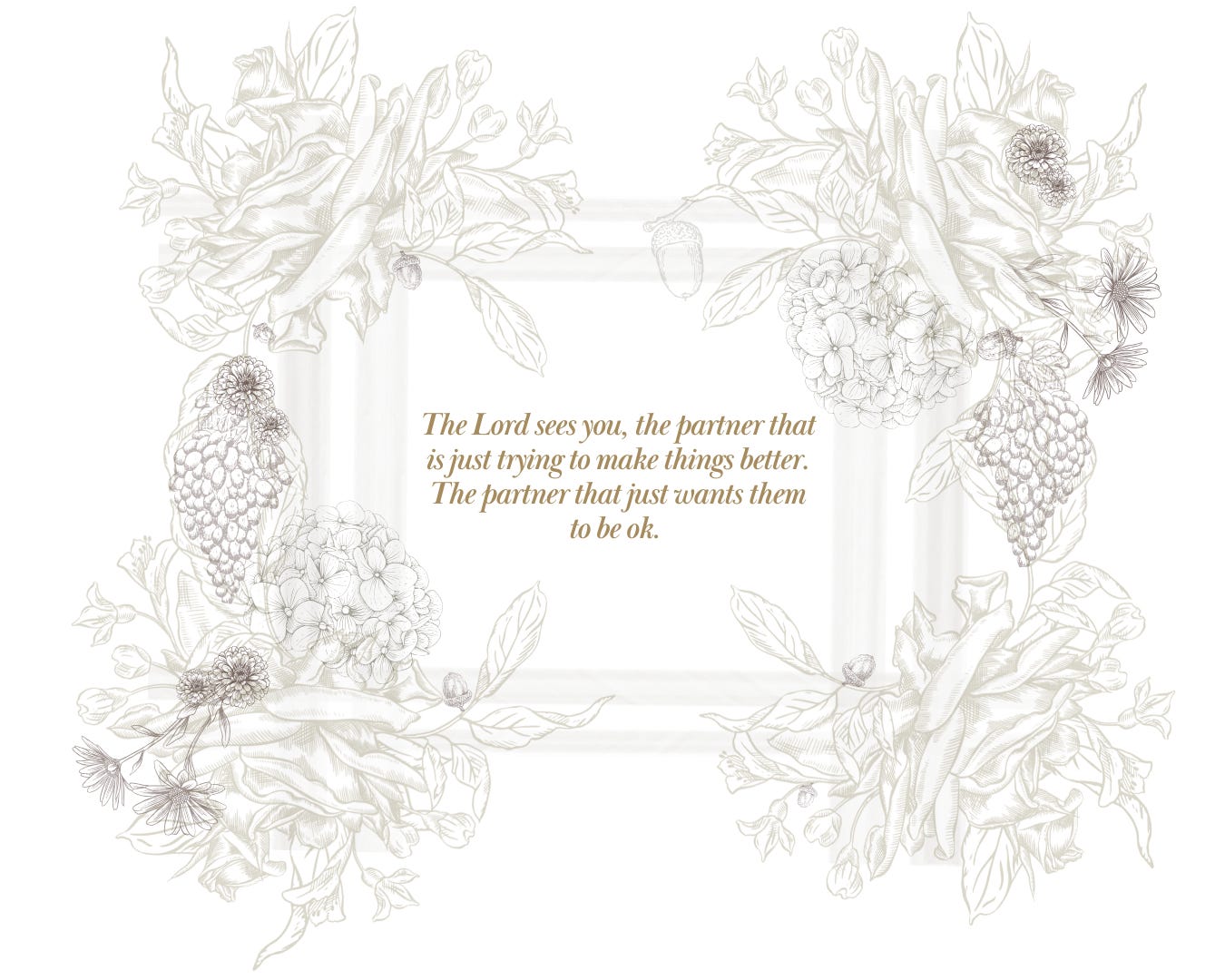 Whether it’s listening to your favorite worship song, reading Liturgies, watching a teaching, memorizing the names of God; it’s important that if we want to be a holy reflection of God’s love as our spouse grapples with trials, that we must turn to our source and satisfier.